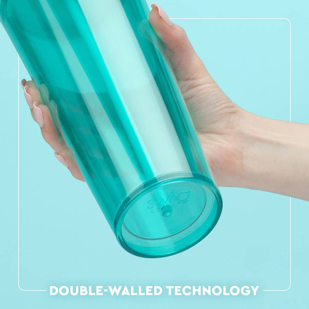 When caring for your Swig: Hand wash only Never use bleach or abrasive cleaners containing chlorine. Do not put in the microwave! Plastic tumbler is not suitable for hot beverages! Always make sure lid is tightly secured before drinking!