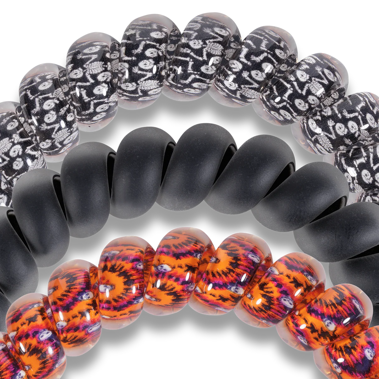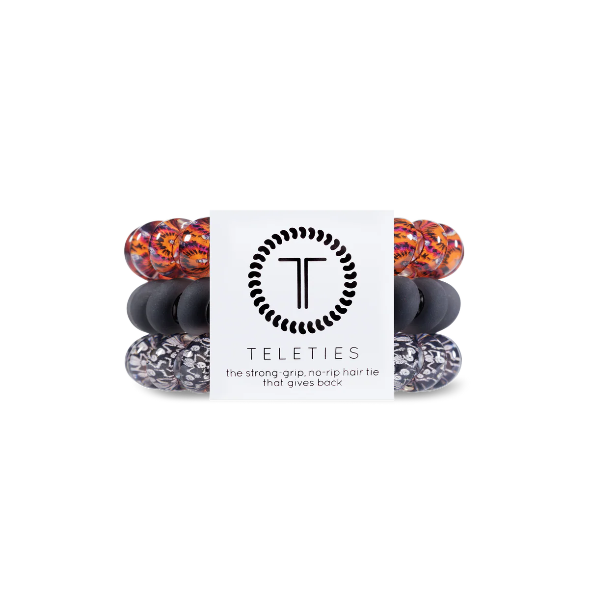Hold your hair and enhance your style with our new Halloween TELETIES. The strong grip, no rip hair tie that doubles as a bracelet. Strong, pretty and stylish, TELETIES are designed to withstand everyday demands while taking your look to the next level.
