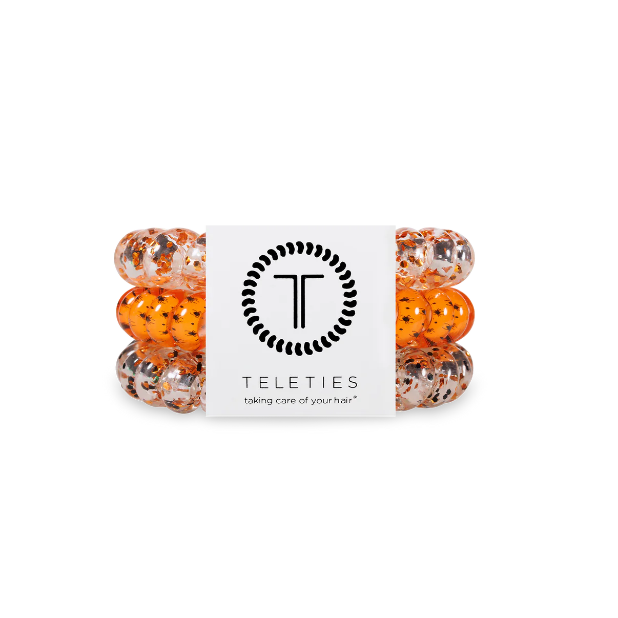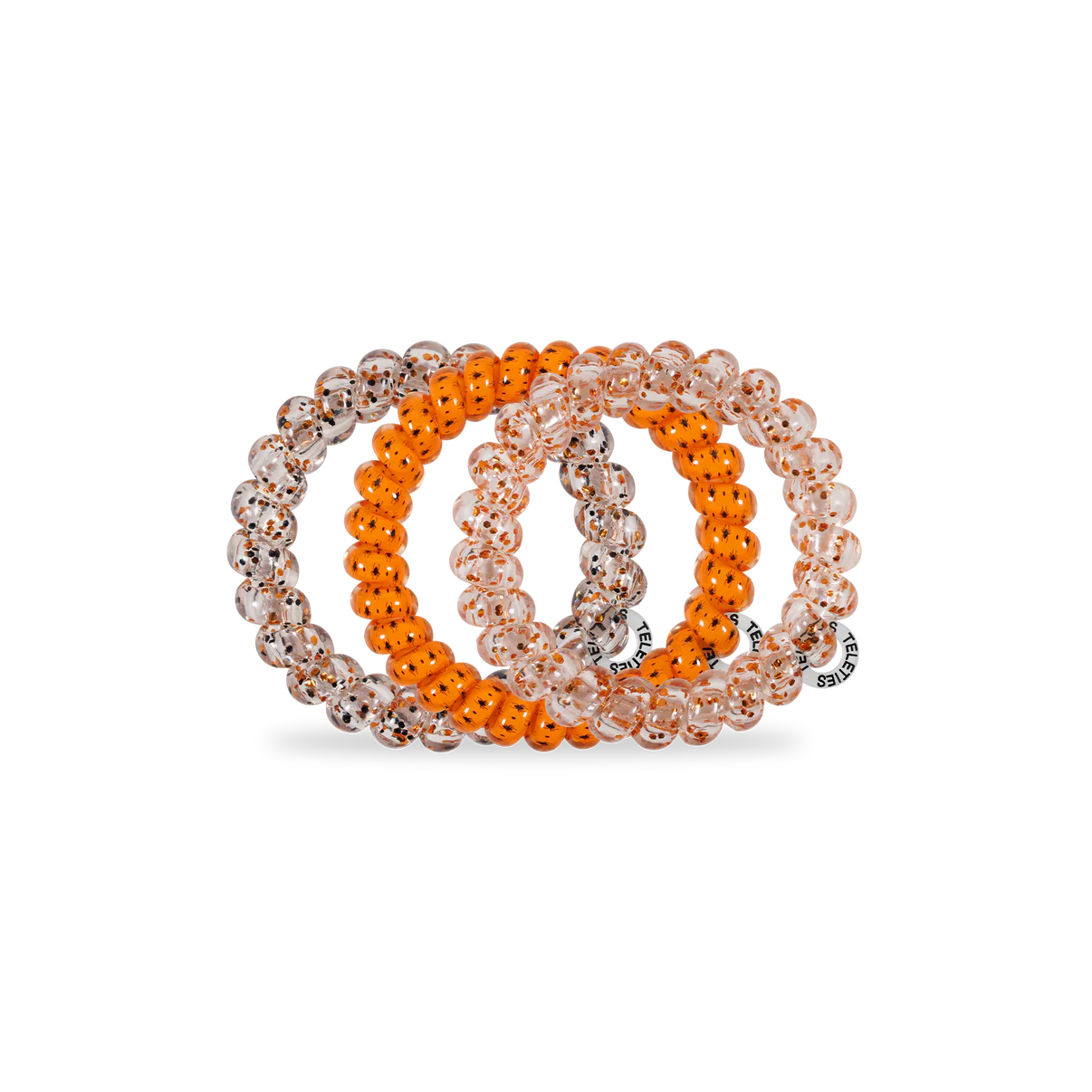 Spooky Sparkles Large Hair Ties in Black and Orange offer a strong grip without damage, doubling as a chic wrist accessory when not in use. Your new favorite hair essentials all year round.