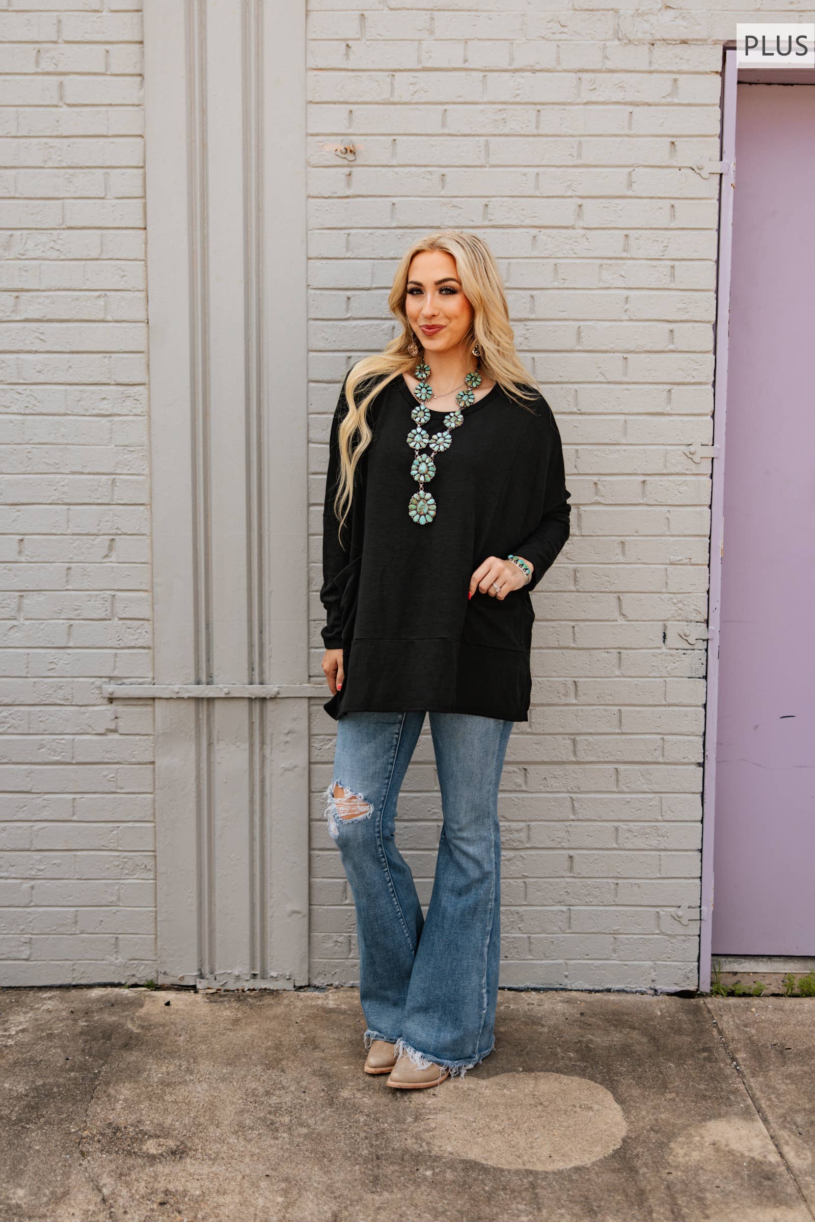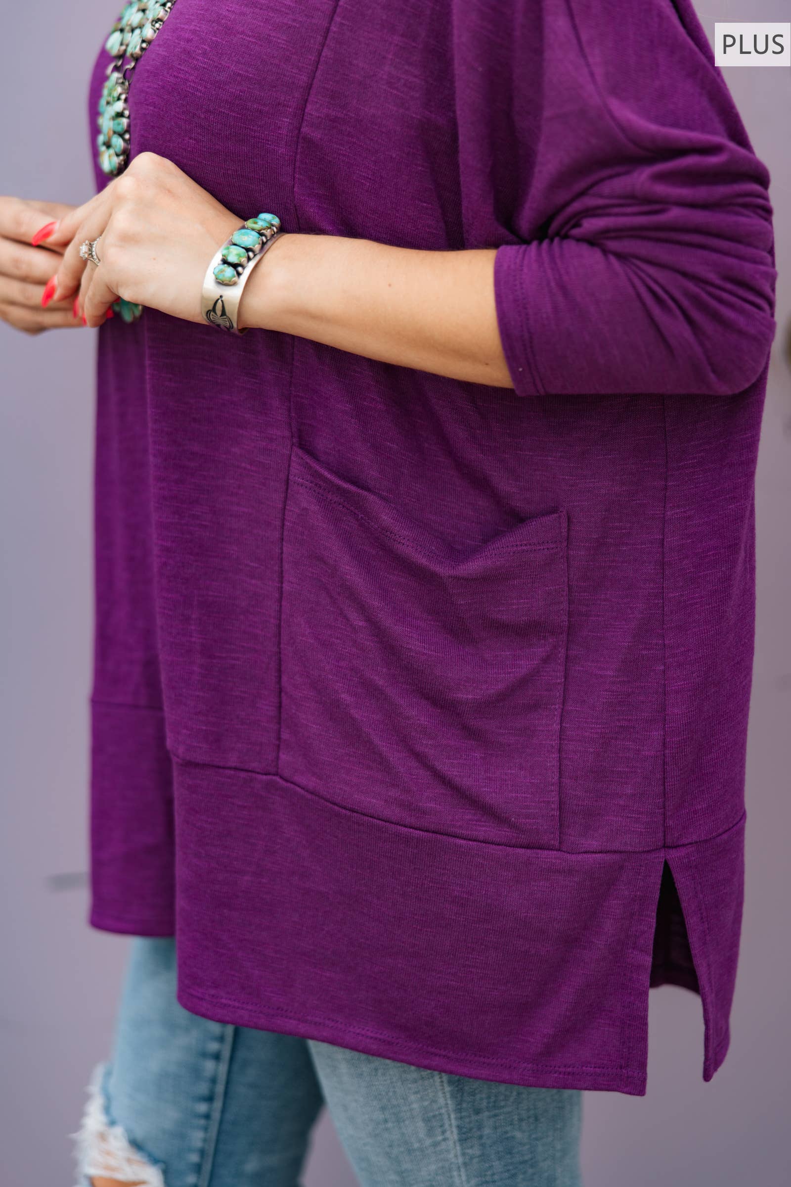 Stay effortlessly comfy in this casual top, crafted that perfectly lived in feel. Featuring a classical round neckline and a front kangaroo pocket for a relaxed touch. We love how soft this fabric feels and it's perfect for a throw on and go look!